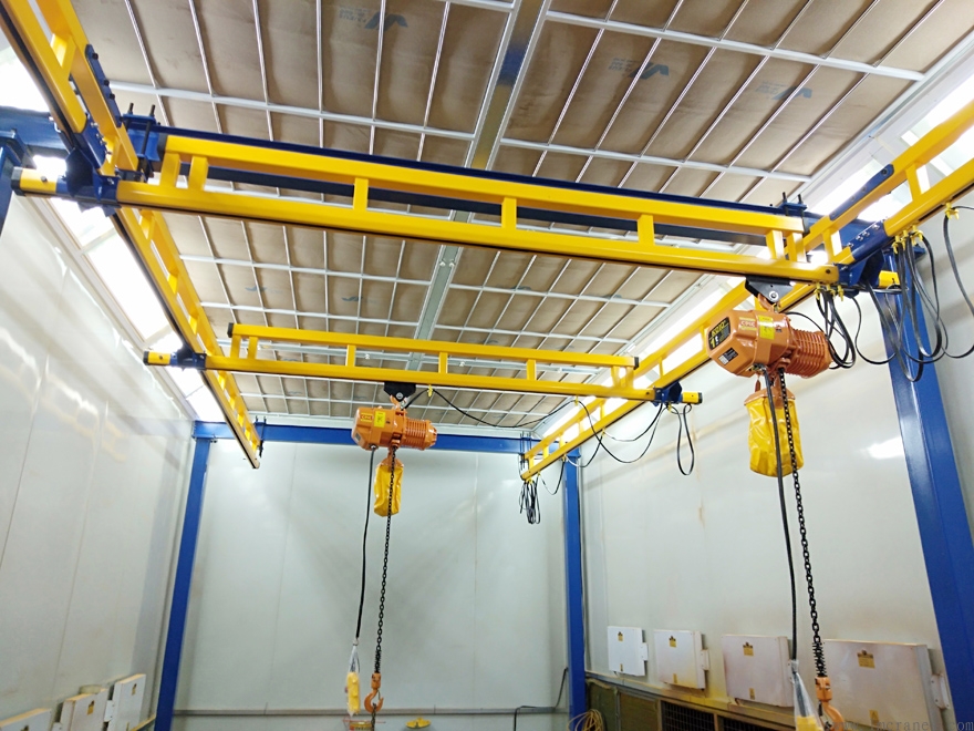 起重機規范組件構成的懸掛式單軌吊地完成了物料的線性空中運送。